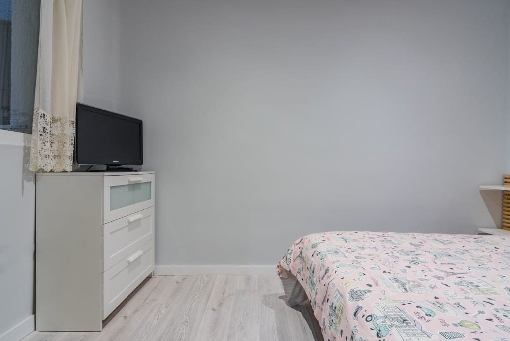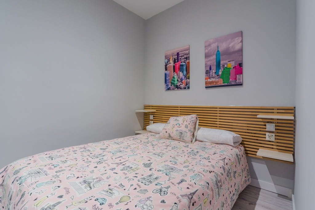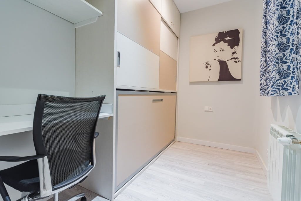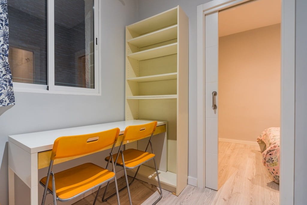 El dormitorio principal cuenta con una cómoda cama doble y una zona de estudio, ideal para teletrabajar o concentrarse en los estudios. El segundo dormitorio dispone de una cama de 90 cm, armario empotrado y su propia área de estudio, perfecto para estudiantes o invitados.