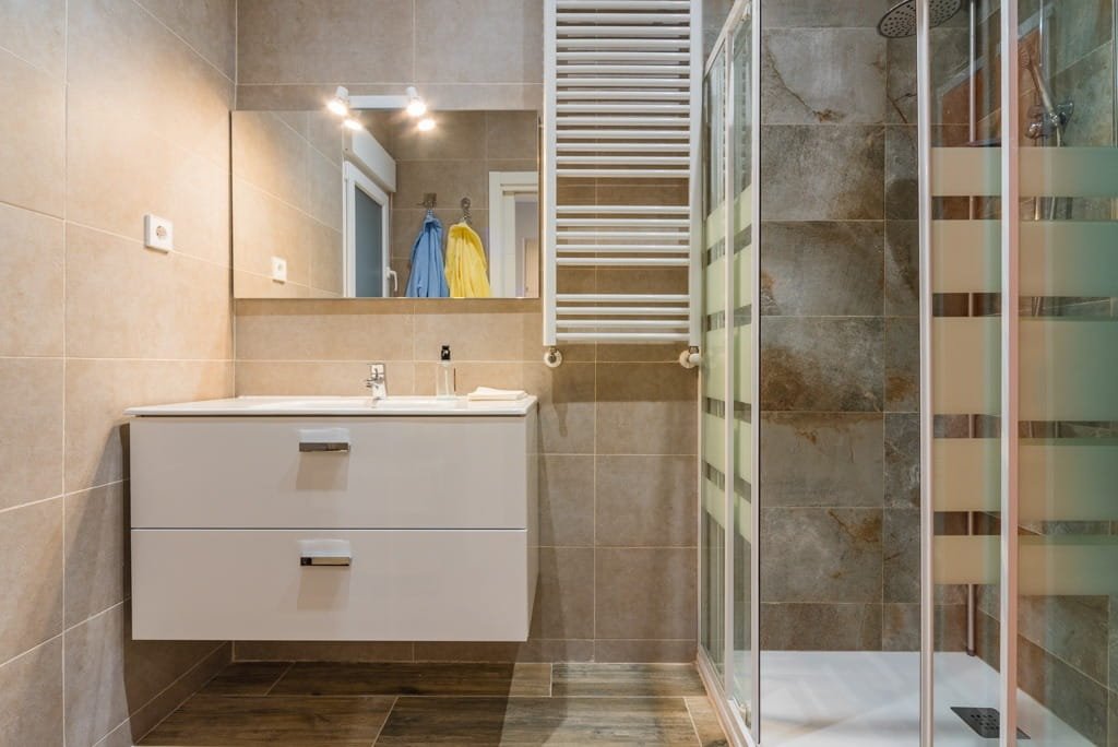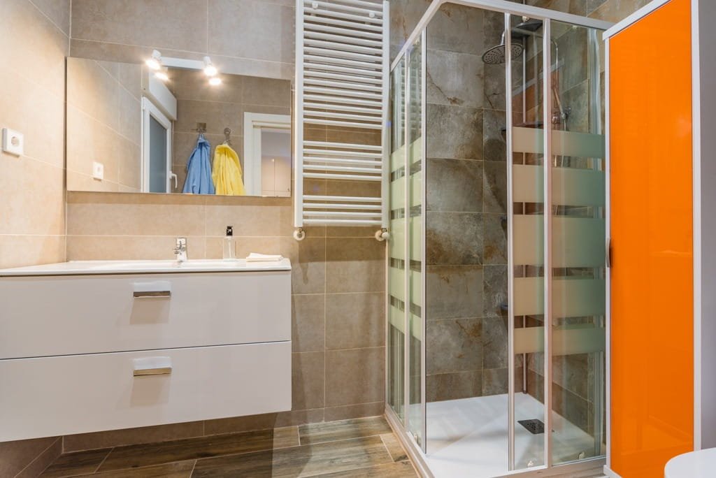El baño es amplio y cuenta con plato de ducha, ofreciendo comodidad y practicidad.