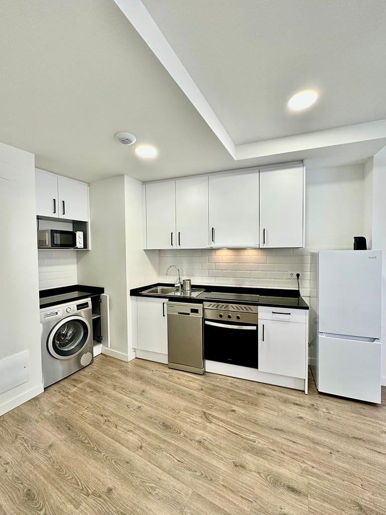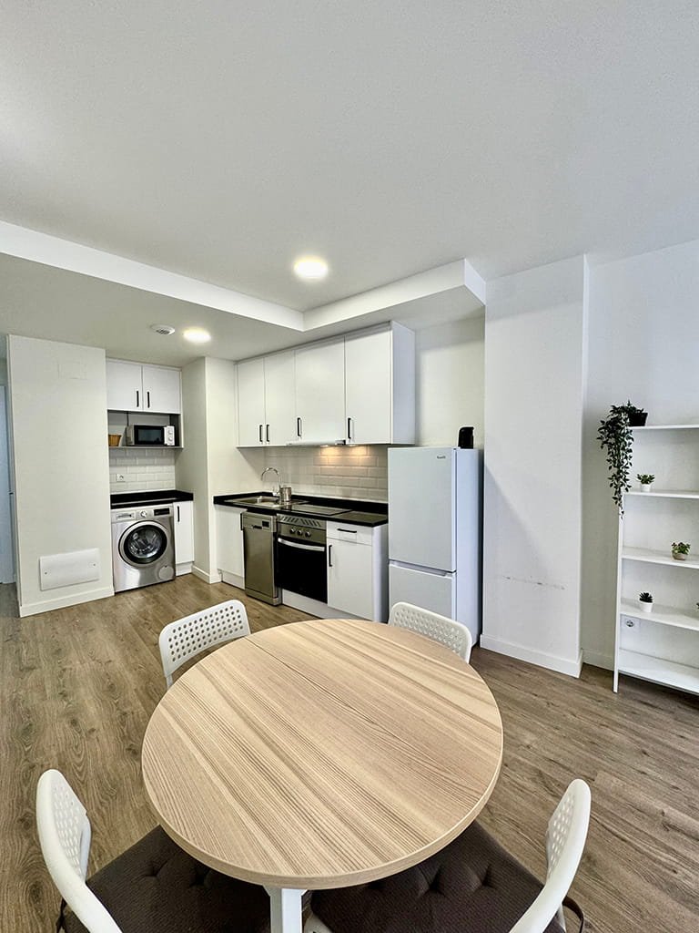 Cuentas con una cocina, nevera, vitrocerámica de 3 hornillas, horno, microondas, lavadora, lavavajillas y menaje básico para preparar tus platillos favoritos y disfrutar del comedor listo para recibir hasta 4 comensales.