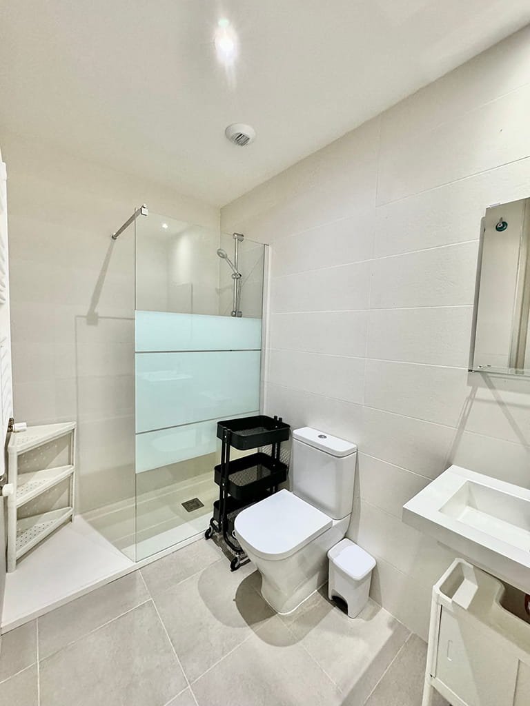 Baño amplio con plato de ducha y regadera, con ventana ala exterior para ventilación y luz natural. Tienes una pequeña terraza para guardar bicicletas, estanterías ó simplemente salir a tomar un poco de aire fresco y ver las vistas al vecindario.