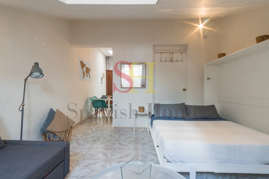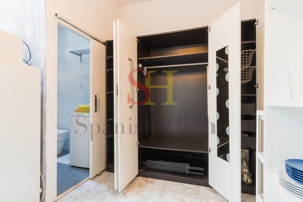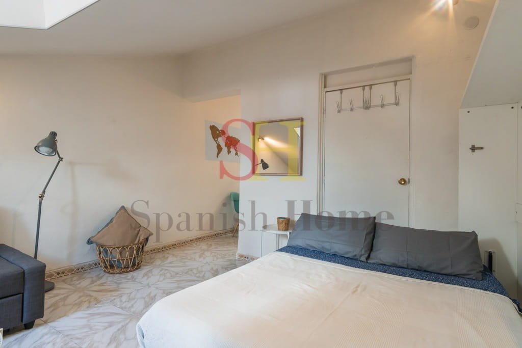 El piso dispone de un amplio salón-dormitorio diseñado para aprovechar al máximo el espacio. Cuenta con una práctica cama abatible y un cómodo sofá-cama, ideal para recibir visitas. Además, encontrarás una televisión de buen tamaño, aire acondicionado con bomba de calor, mesas de centro y de noche, y un amplio armario para guardar todas tus pertenencias.