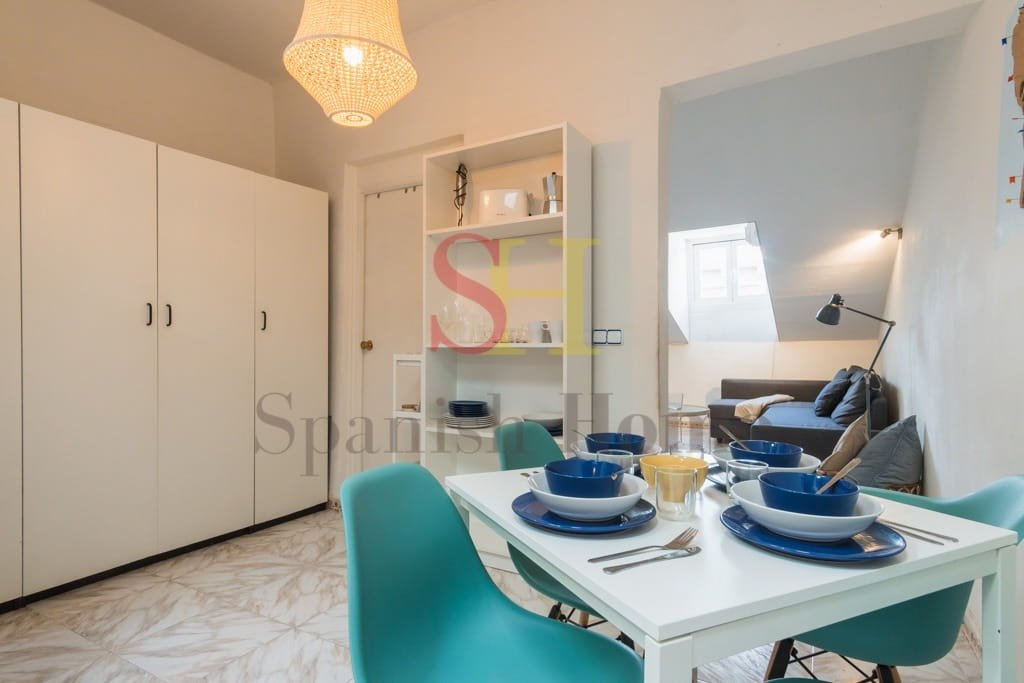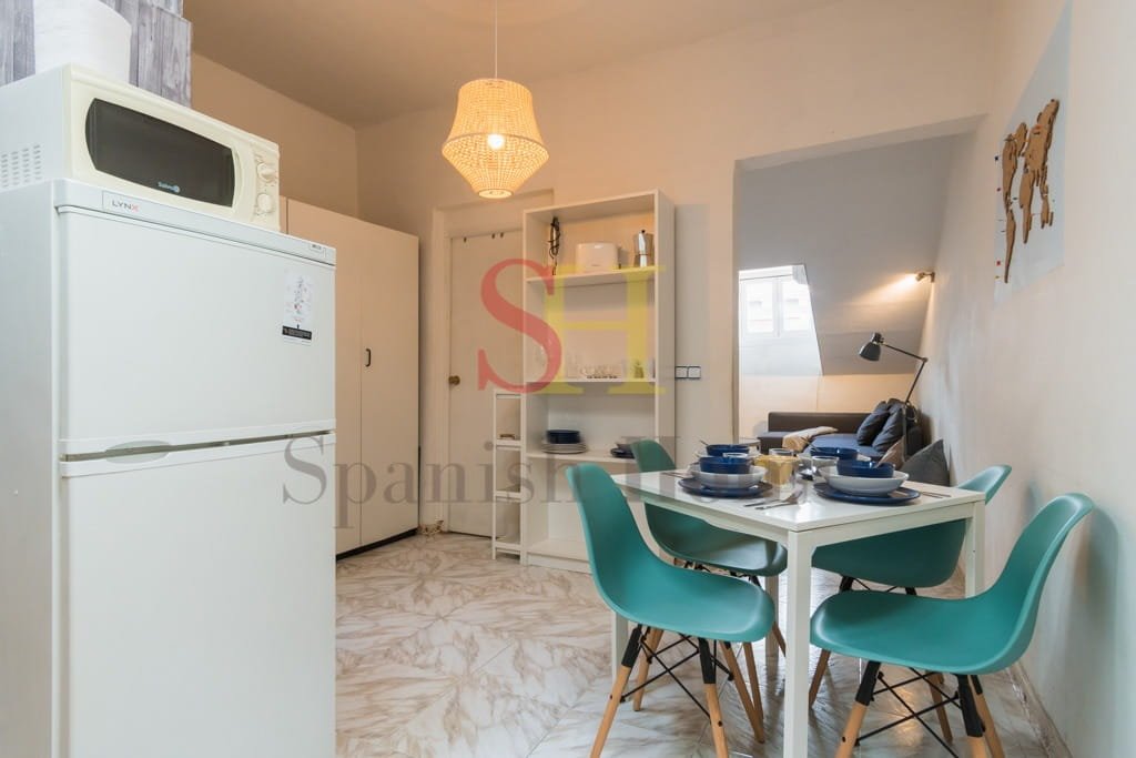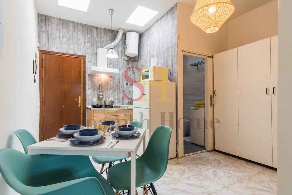 Fully furnished and equipped, the apartment is designed to provide a comfortable and practical stay in Madrid. Its street-facing windows allow plenty of natural light to enter the space and provide fresh ventilation, creating a bright and welcoming atmosphere.