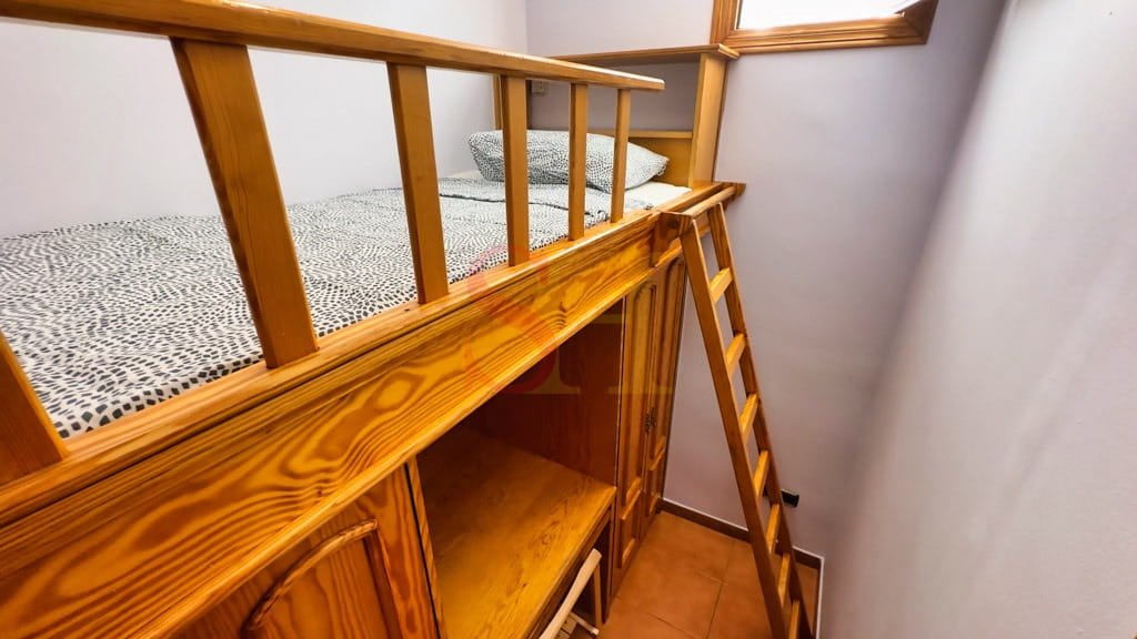 La vivienda, aunque de tamaño compacto, está diseñada de forma funcional para aprovechar al máximo el espacio. Dispone de dos dormitorios equipados con camas individuales y mesas de trabajo, proporcionando un ambiente cómodo tanto para el descanso como para el estudio o el teletrabajo.