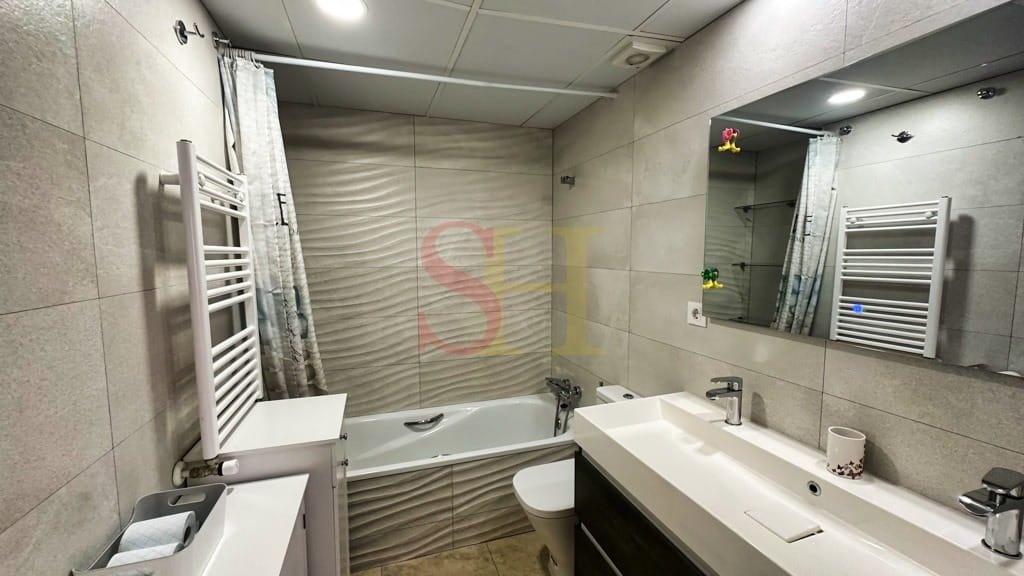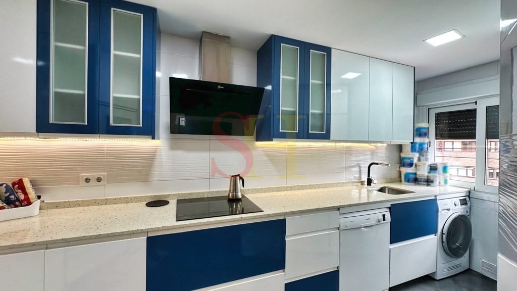 La vivienda dispone de cuatro dormitorios bien distribuidos: tres con camas individuales y uno con cama doble, proporcionando espacio y privacidad para todos los residentes. Los baños han sido renovados con un diseño moderno y elegante. La cocina es amplia y está equipada con electrodomésticos de alta gama, además de contar con muebles funcionales que ofrecen abundante espacio de almacenamiento.