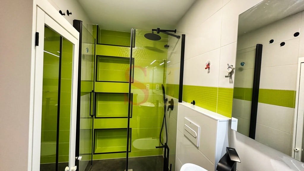 The property features four well-distributed bedrooms: three with single beds and one with a double bed, providing both privacy and flexibility. The bathrooms have been updated with a modern and stylish design. The spacious kitchen is fully equipped with high-end appliances and modern cabinetry, offering plenty of storage space.