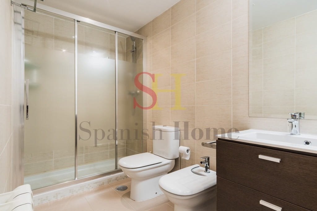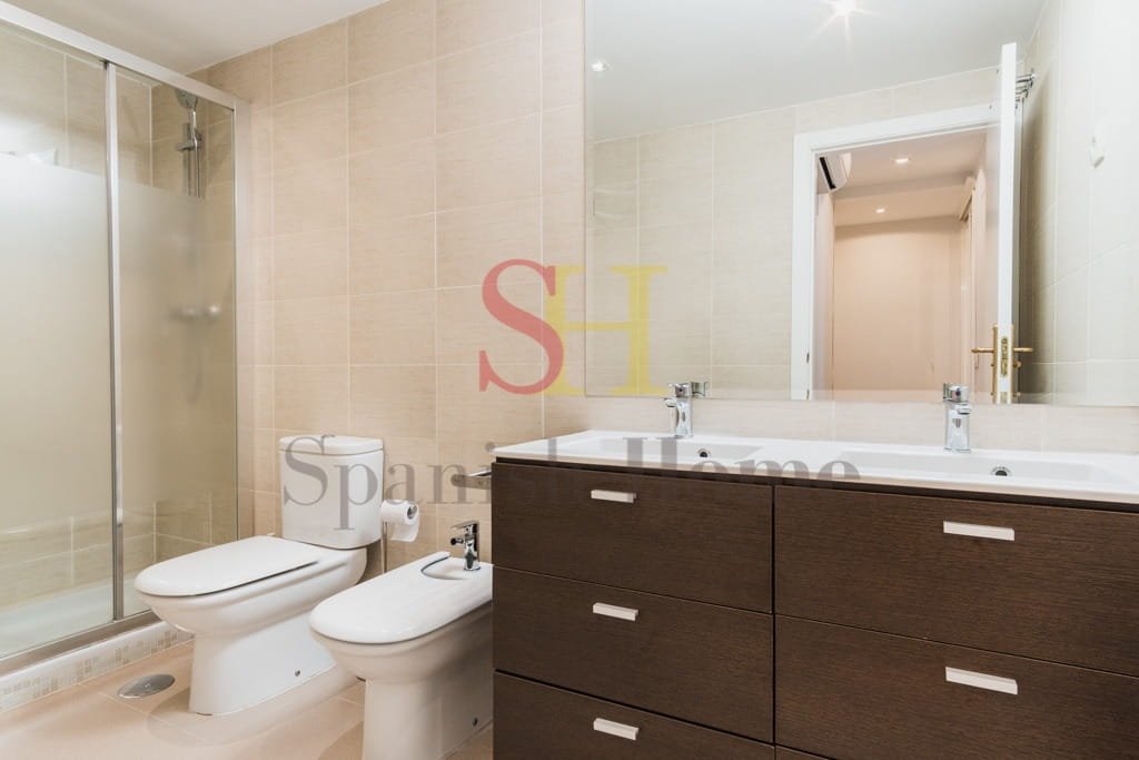 El apartamento cuenta con dos baños: uno con bañera y otro con plato de ducha, aportando comodidad en el día a día.