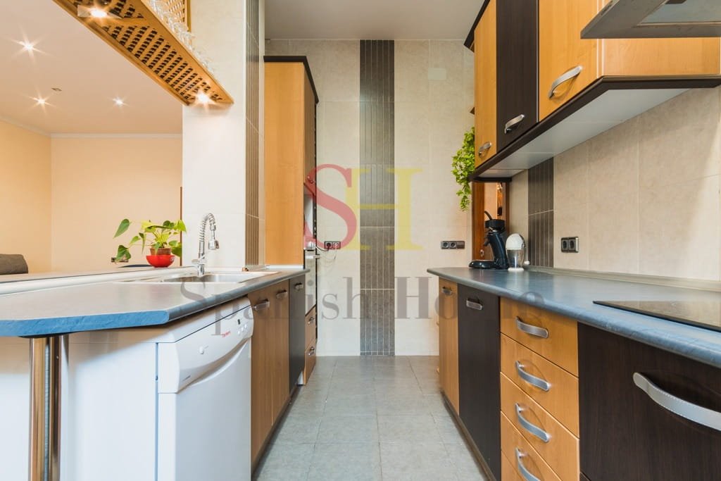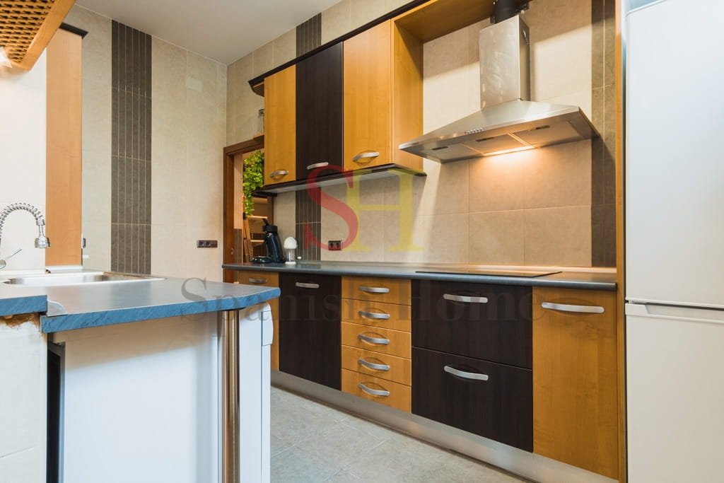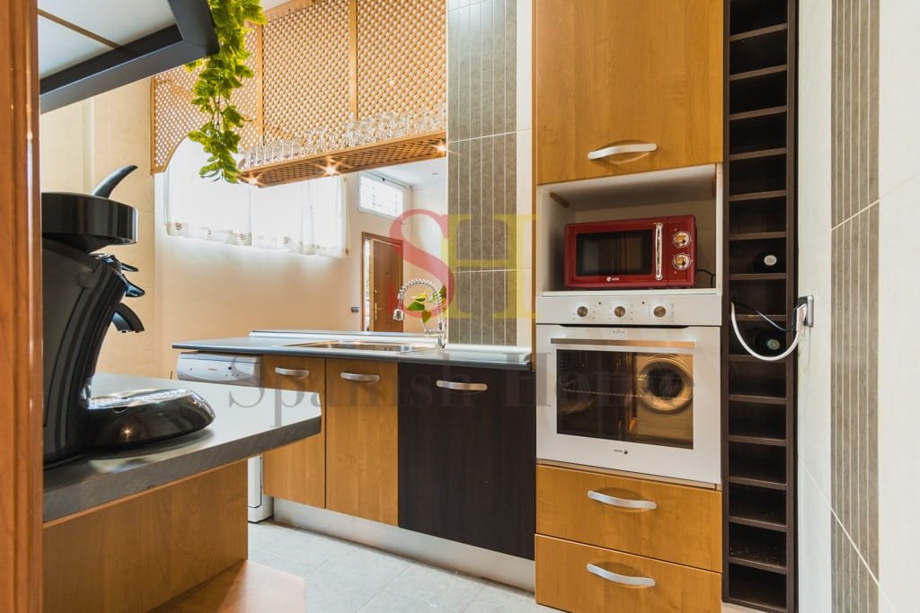 La cocina está completamente equipada con electrodomésticos modernos y dispone de una práctica barra con taburetes altos, perfecta tanto para preparar alimentos como para disfrutar de desayunos o comidas informales.
