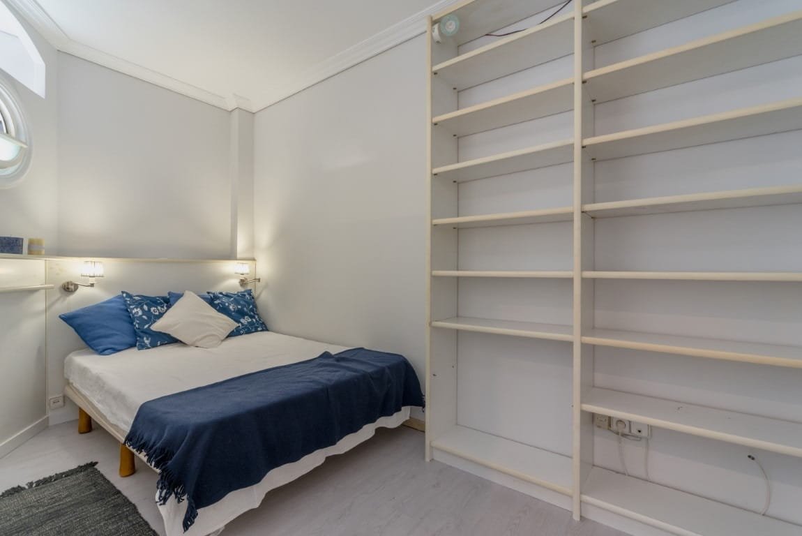 El piso dispone de un dormitorio amplio e independiente, con cama doble de 140 × 190 y armario empotrado de gran capacidad. La habitación cuenta con puerta para garantizar privacidad y ofrece excelente ventilación y luz natural entre el salón y el área personal. Además, dispone de un gran espejo, perfecto para prepararte cómodamente cada mañana.