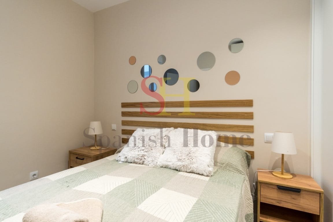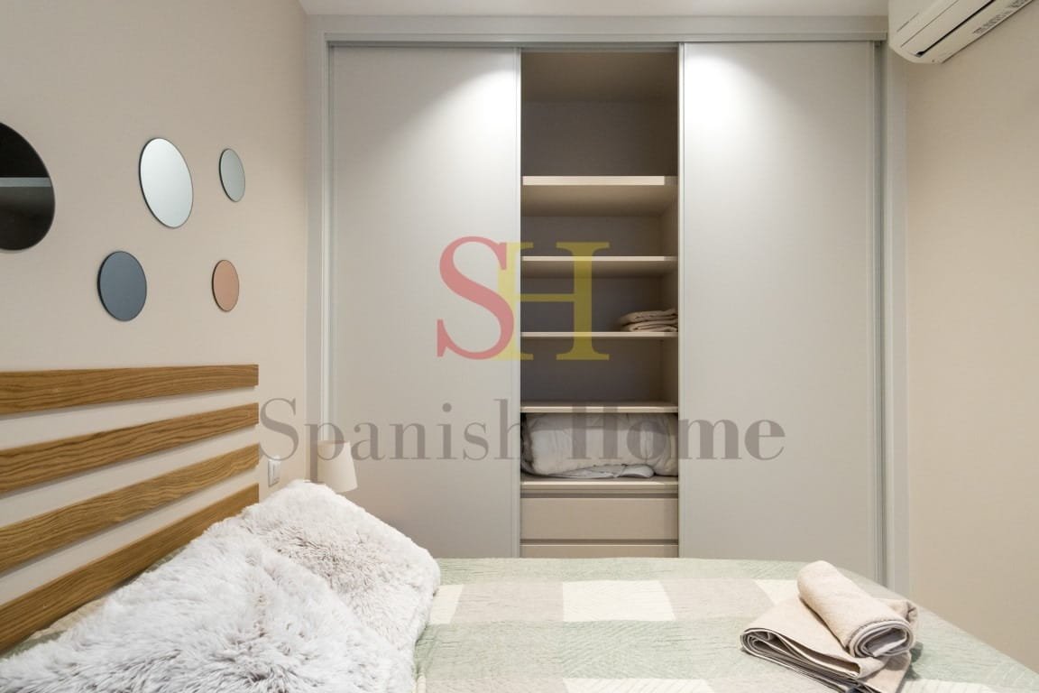 La vivienda dispone de dos dormitorios, ambos con amplios armarios empotrados, ofreciendo un excelente espacio de almacenamiento. El salón es amplio y acogedor, decorado con un estilo moderno y funcional que crea un ambiente cómodo tanto para relajarse como para compartir momentos con amigos o familiares.