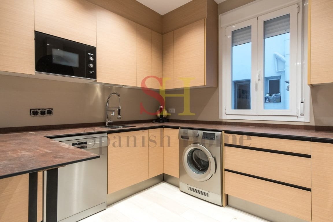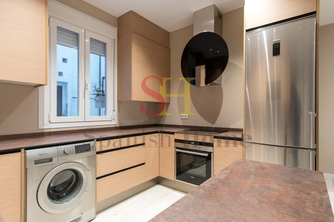 La cocina está equipada con todos los electrodomésticos necesarios para el día a día, incluyendo nevera grande, vitrocerámica, lavadora/secadora y menaje de cocina, lo que te permitirá preparar tus comidas con total comodidad.