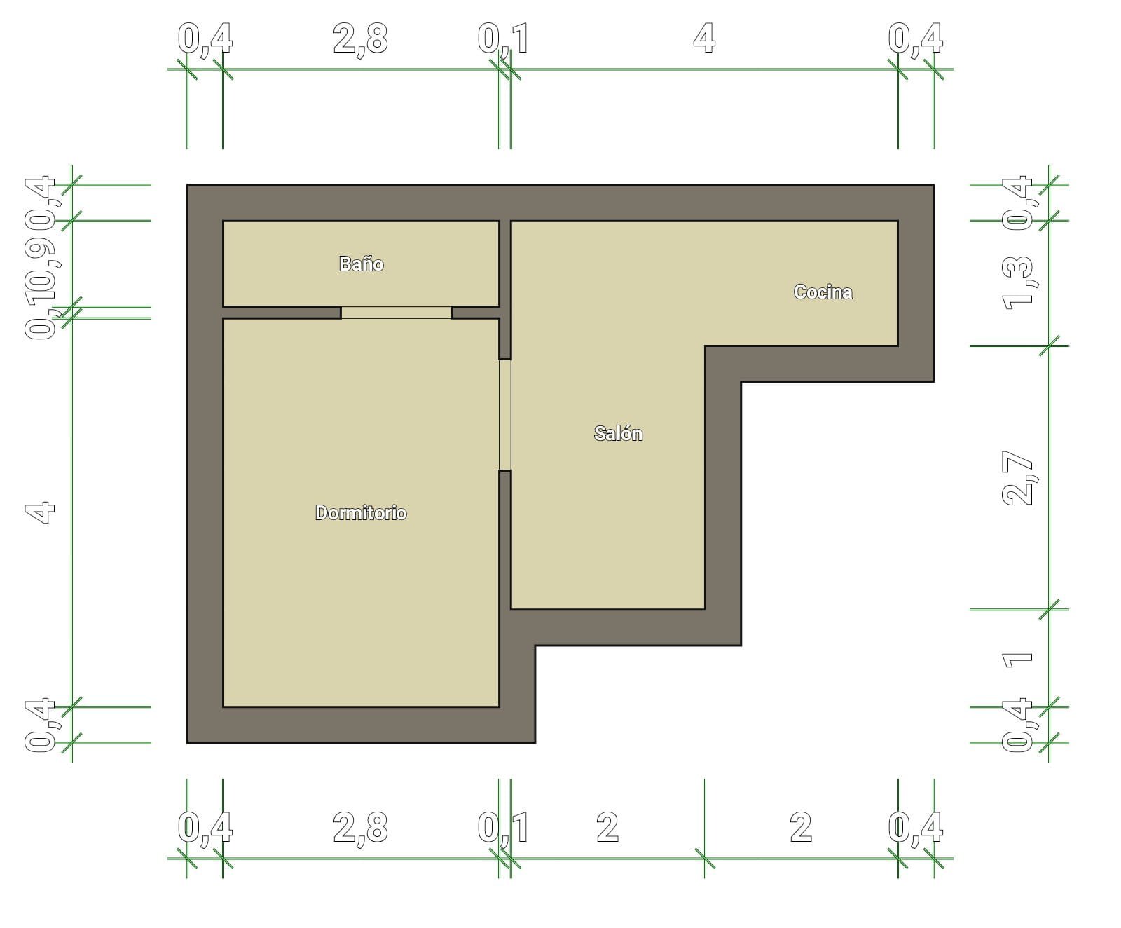 La vivienda dispone de un dormitorio con cama de 135 × 190 cm, amplio armario y mesa de trabajo, ideal tanto para el descanso como para estudiar o trabajar desde casa. El dormitorio cuenta además con baño en suite, aportando mayor privacidad y comodidad.