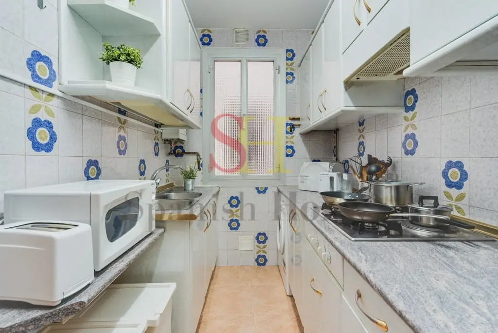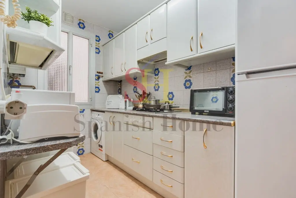 La cocina, totalmente equipada con electrodomésticos esenciales, utensilios y una práctica barra de preparación, combina comodidad y practicidad. El apartamento cuenta con calefacción individual de gas y buena ventilación natural en todas las estancias, garantizando confort durante todo el año.