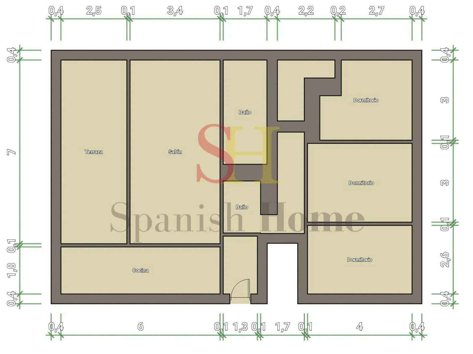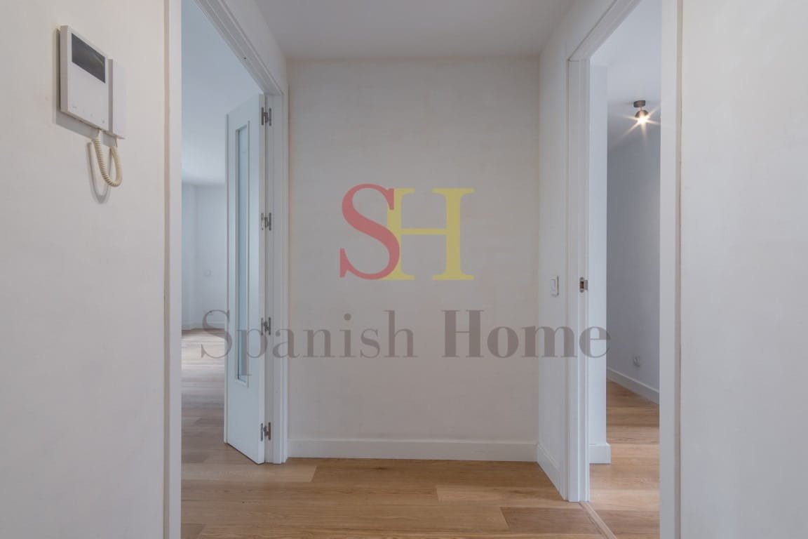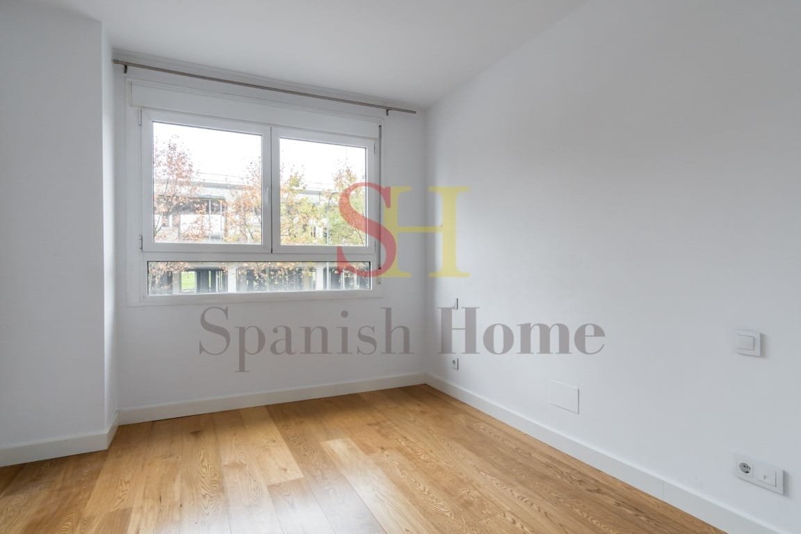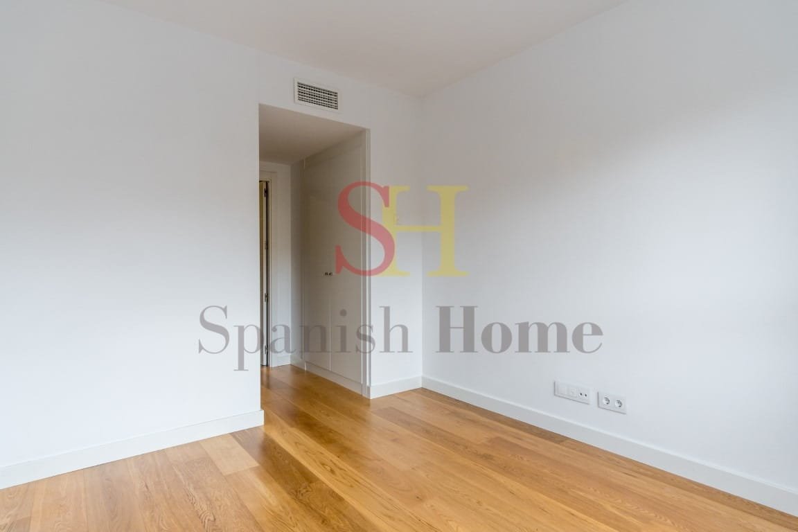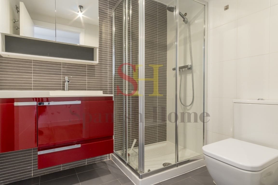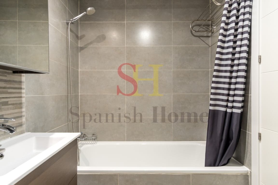El piso cuenta con tres dormitorios y dos baños, siendo el dormitorio principal en suite, con baño privado que dispone de bañera. Todos los dormitorios cuentan con armarios empotrados lacados en blanco, ofreciendo un diseño limpio y funcional con gran capacidad de almacenamiento.