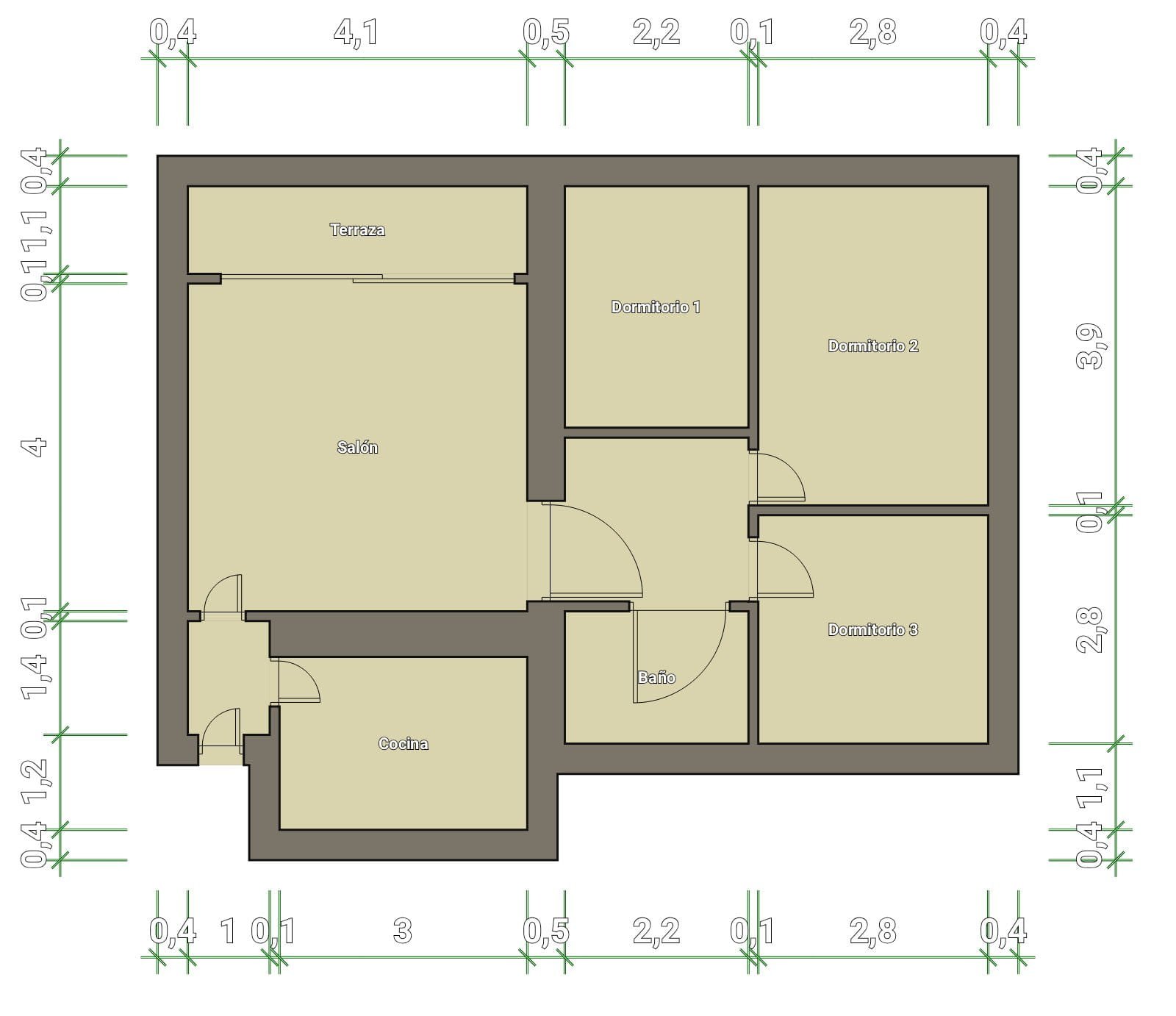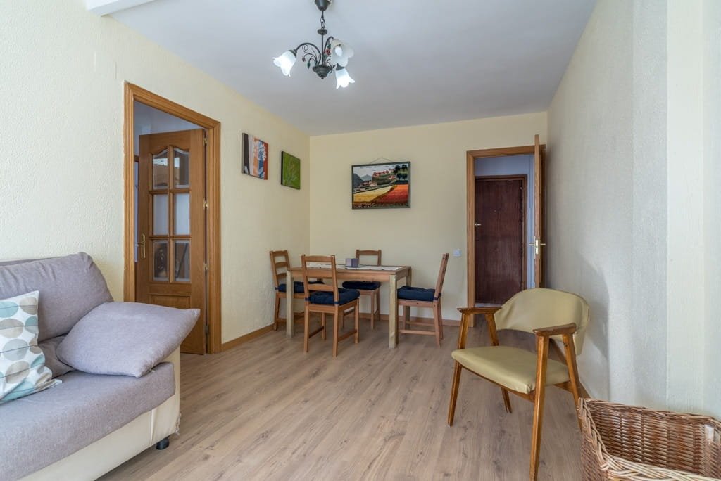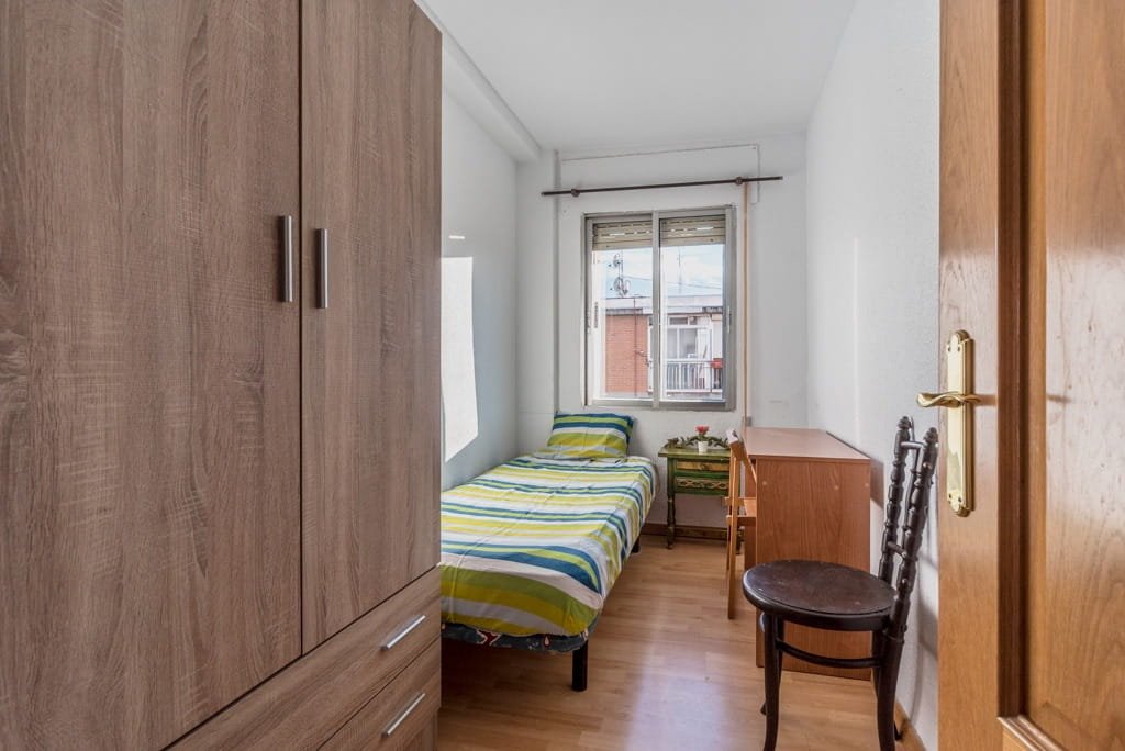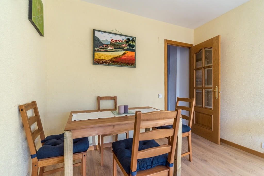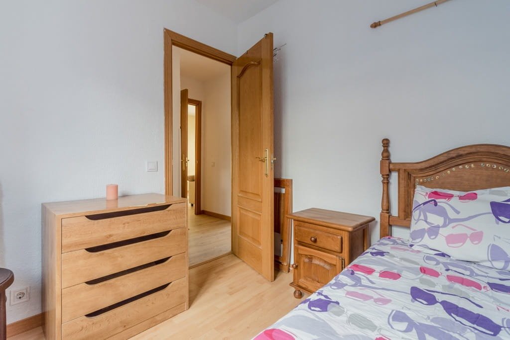 El piso cuenta con 64 m² útiles, está completamente amueblado y dispone de tres dormitorios, cocina y salón. Es una vivienda luminosa y bien distribuida. Uno de los dormitorios dispone de cama doble y armario empotrado, mientras que los otros dos cuentan con camas individuales y armarios, todos con ventanas que aportan luz natural y ventilación.