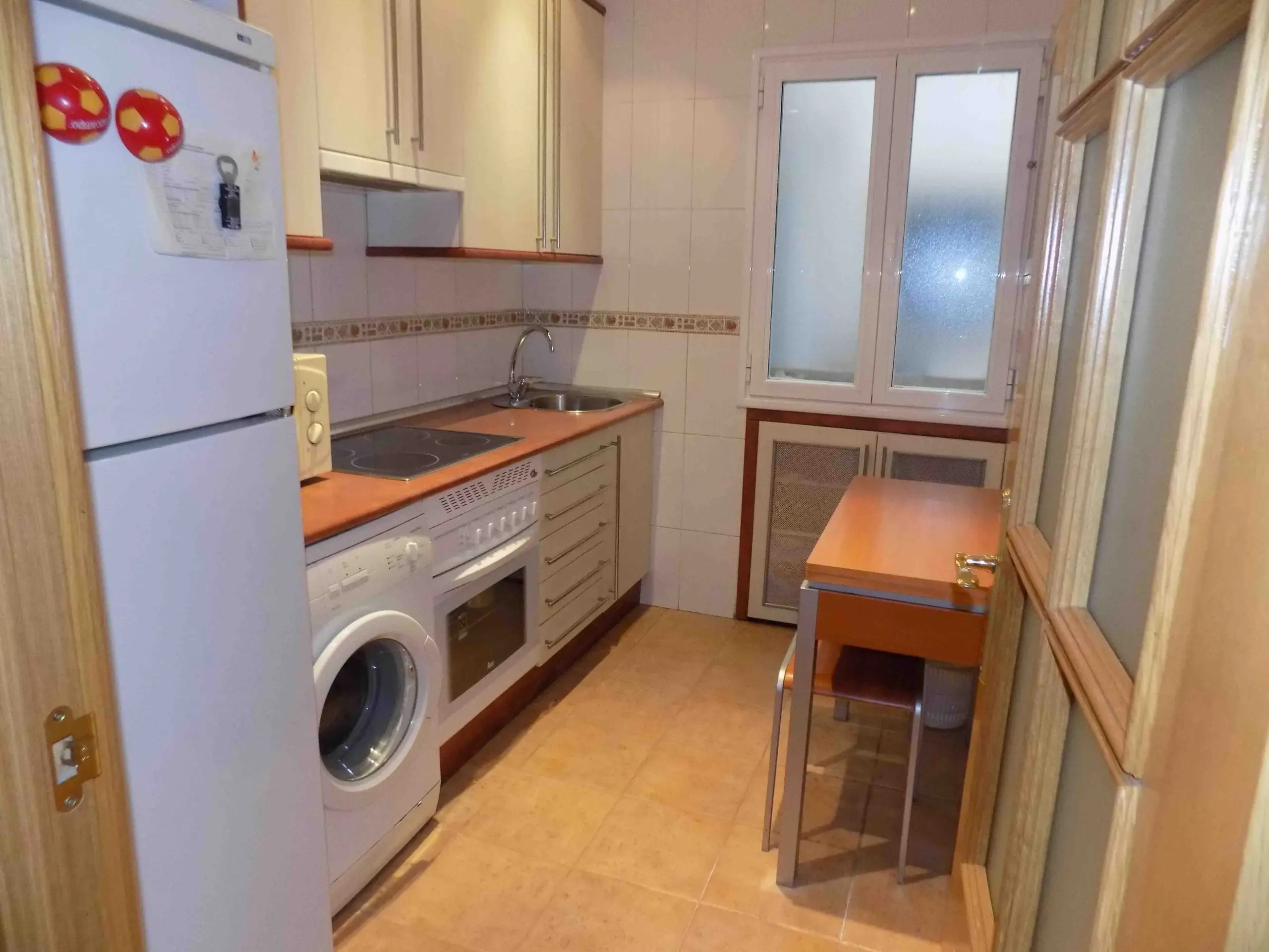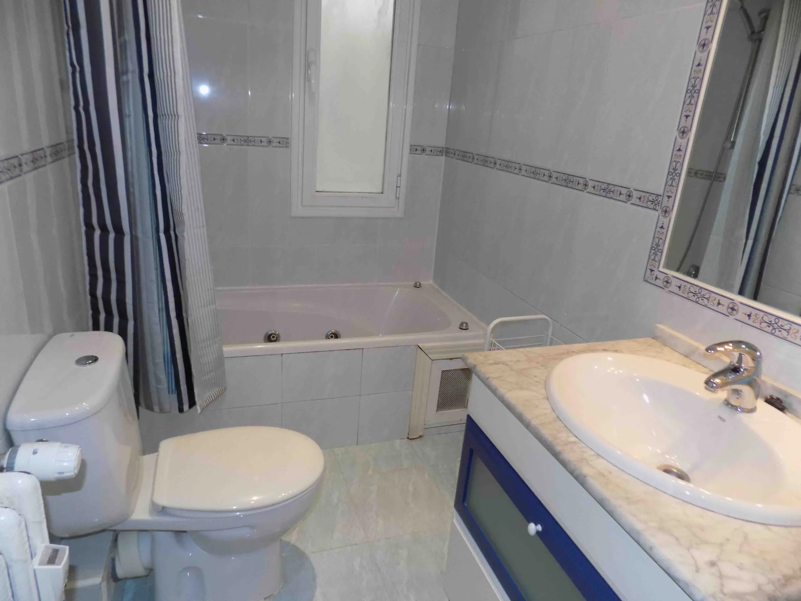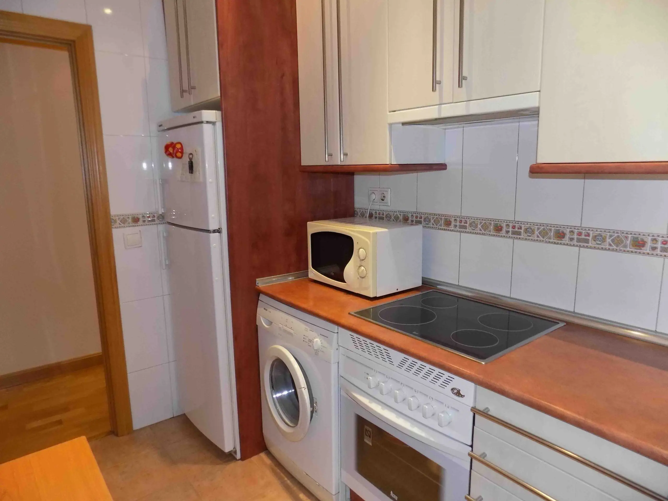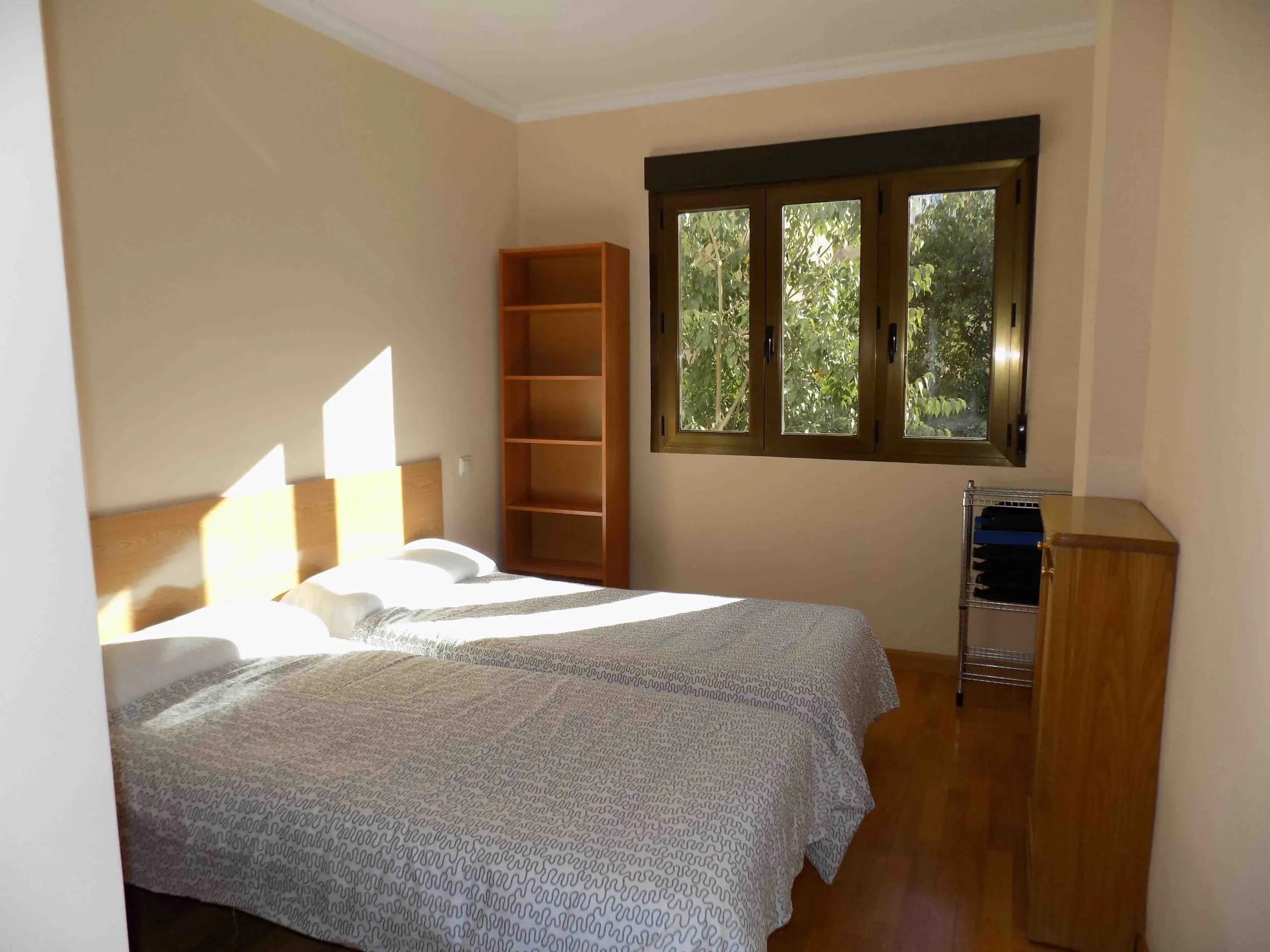 El apartamento dispone de tres dormitorios bien distribuidos: uno con cama matrimonial y dos con camas individuales, ideales tanto para compartir como para tener espacio adicional para invitados o trabajo desde casa. Cuenta con dos baños completos, uno con plato de ducha y otro con bañera, lo que aporta mayor comodidad para el día a día.