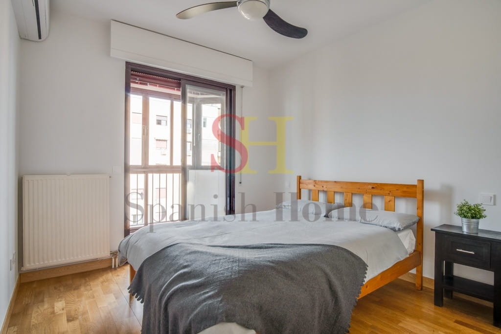 The apartment offers 79 m² of living space, providing a spacious, bright, and comfortable environment with excellent connections to the rest of the city. It features one fully independent bedroom with a double bed, large built-in wardrobes, and an exterior balcony with large windows that allow abundant natural light to fill the space.