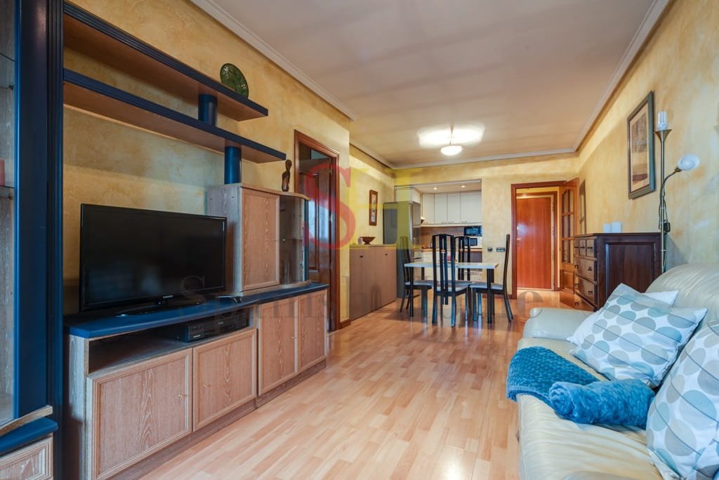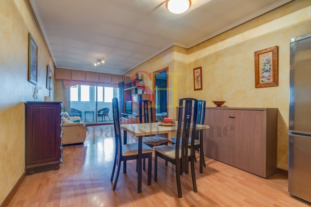 El salón es amplio y luminoso, con muy buena ventilación. Está equipado con un cómodo sofá y una cama adicional para invitados, además de una mesa de comedor con capacidad para cuatro personas. La cocina americana está equipada con electrodomésticos y menaje, ofreciendo todo lo necesario para disfrutar de tu estancia temporal en Madrid.
