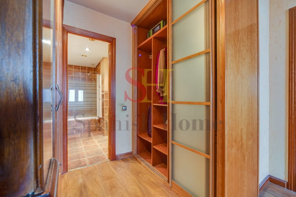 El dormitorio está totalmente amueblado con cama doble y dispone de un amplísimo vestidor-armario. Además, es una suite con baño privado y ventanas al exterior que permiten una excelente ventilación y la entrada de abundante luz natural.