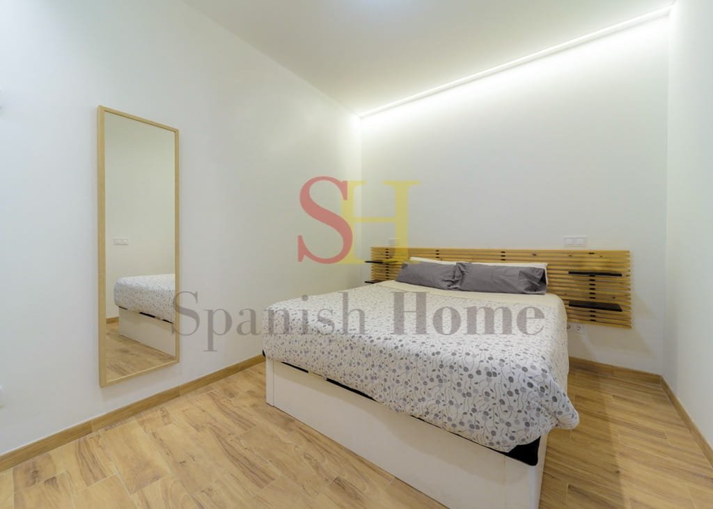 El dormitorio es amplio y luminoso, con ventana interior que permite la entrada de luz natural. Dispone de cama doble canapé de 135 × 190, armario empotrado de gran capacidad y puertas que garantizan privacidad, además de una excelente ventilación.