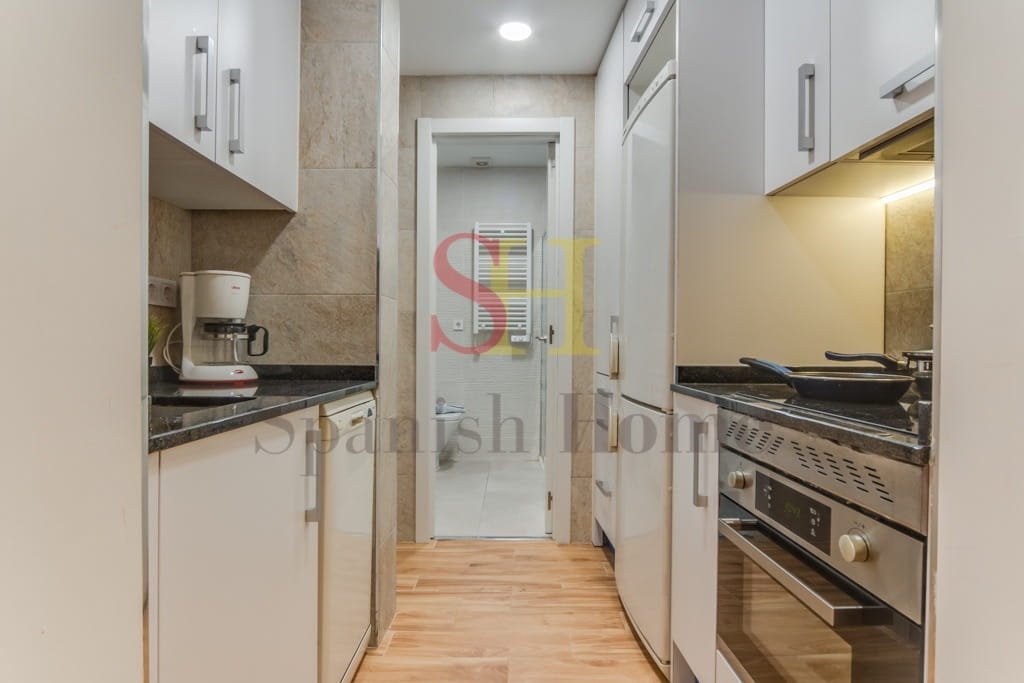 La cocina es independiente, de estilo americano y completamente reformada, equipada con los electrodomésticos básicos necesarios para facilitar tu día a día, en un espacio práctico y con carácter.