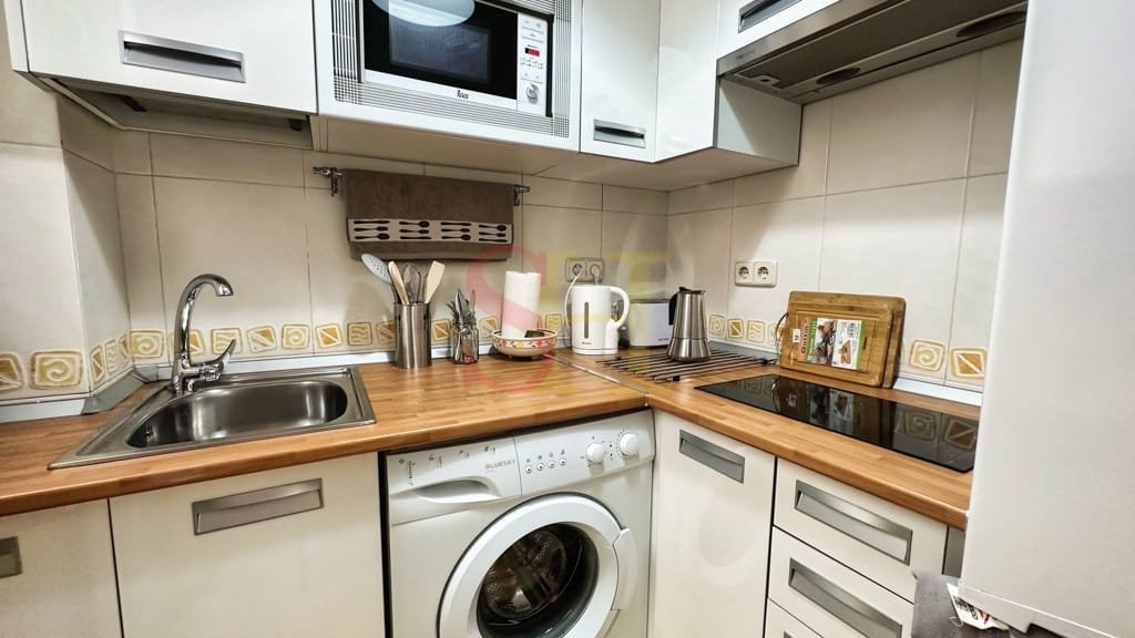 El salón destaca por su decoración cuidada y muebles de excelente calidad, creando un espacio acogedor y sofisticado. La cocina está totalmente equipada con electrodomésticos de primera y menaje completo, ideal para quienes disfrutan de la cocina sin renunciar al confort.